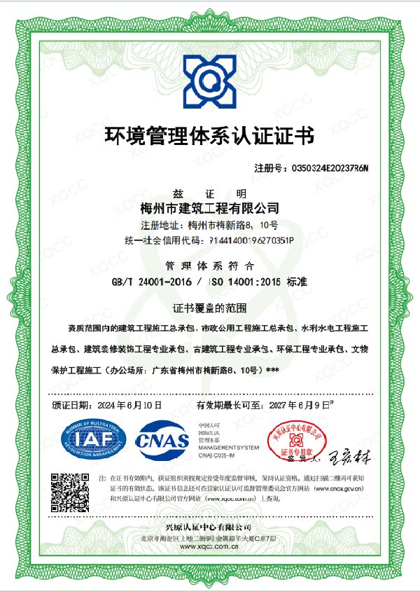 環(huán)境管理體系認證證書